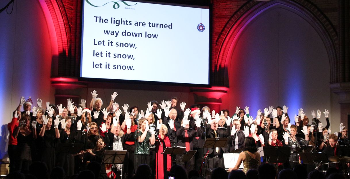 It doesn't matter whether you "can" it or not. Whether you're 15 or 65, a kid or a tween, a "professional" or a casual nightingale, with full fervor or a bit more shy: everyone can easily sing along, because the lyrics are displayed on a large screen above the stage, and the melodies are familiar. And if you can't, Suely Lauar, a highly experienced choir director and pianist, and her "Singing Sues" on stage will support those who aren't sure about the melody, all of which results in plenty of goosebumps, endorphins, and Christmas spirit.