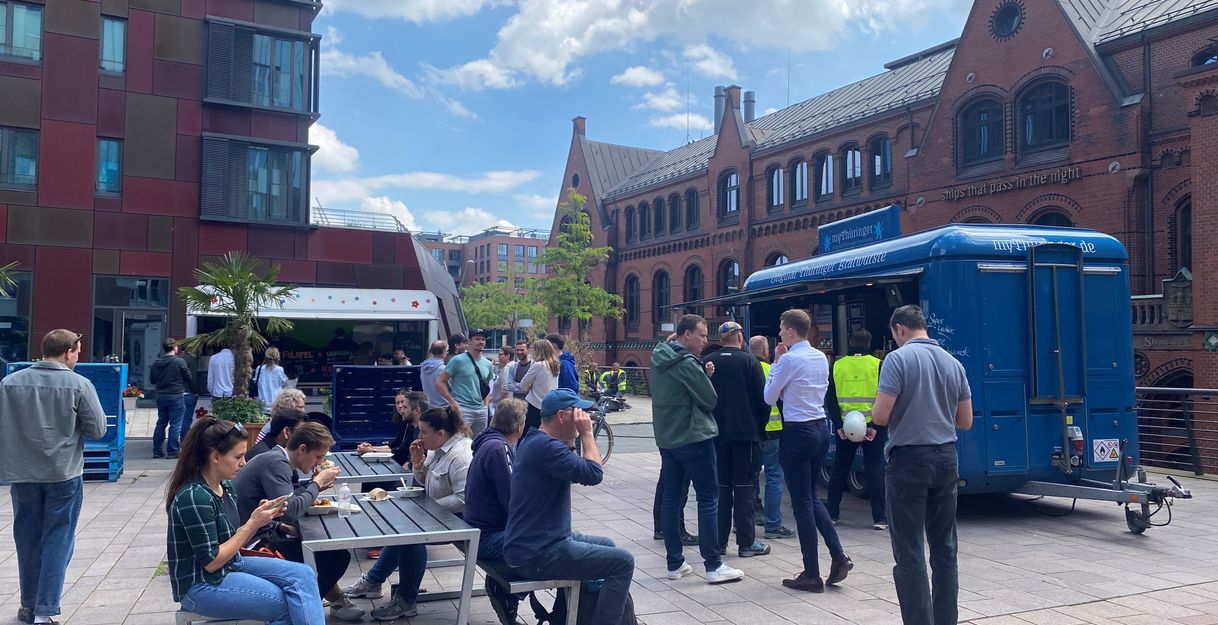 Under the motto "Street food meets weekly market", the Food Lovers Market takes place once a week on the market square on Überseeboulevard.