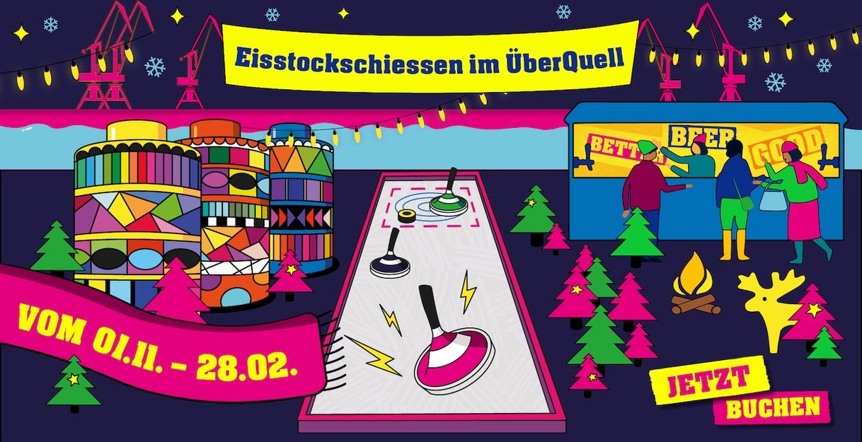 Our two covered ice curling lanes, each 14 meters long, offer Olympic dimensions, atmospheric décor, and genuine winter container flair – right in the heart of Hamburg’s St. Pauli.