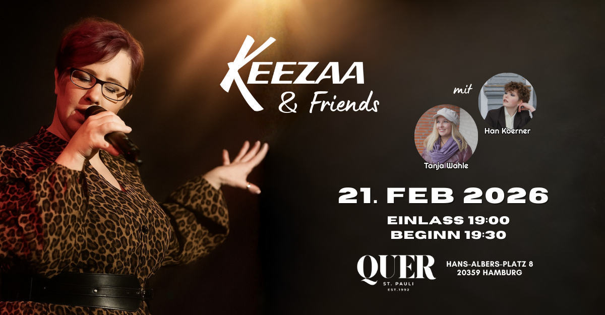 On February 21, 2026, Keezaa will celebrate the release of her debut album HERE at Quer on the Reeperbahn – and invites two musician friends to join her in creating this evening together: Han Koerner and Tanja Wahle.