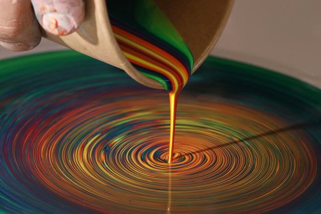 Pour specially diluted acrylic paints onto the canvas and, by tilting and experimenting, create stunning patterns and color gradients. This technique allows you to craft abstract artworks with deep, complex textures without using traditional tools. Each piece you create will be truly one of a kind.
